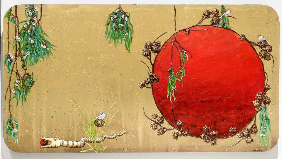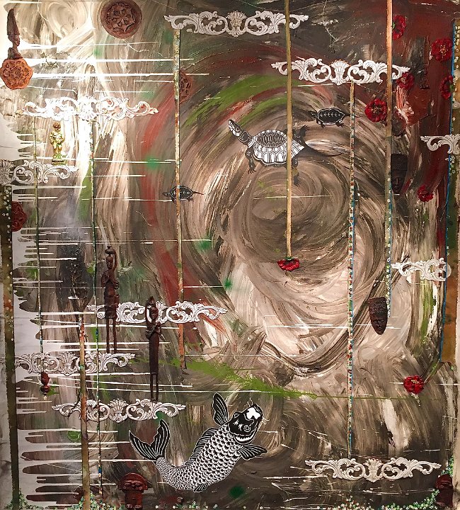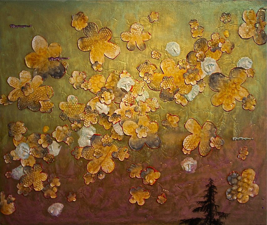 7 Buddhas with Dragons, acrylic on canvas, 43 x 50 in |