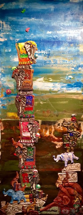 6 Elephant Shenanigans, acrylic on canvas, 60 x 23.5 in |